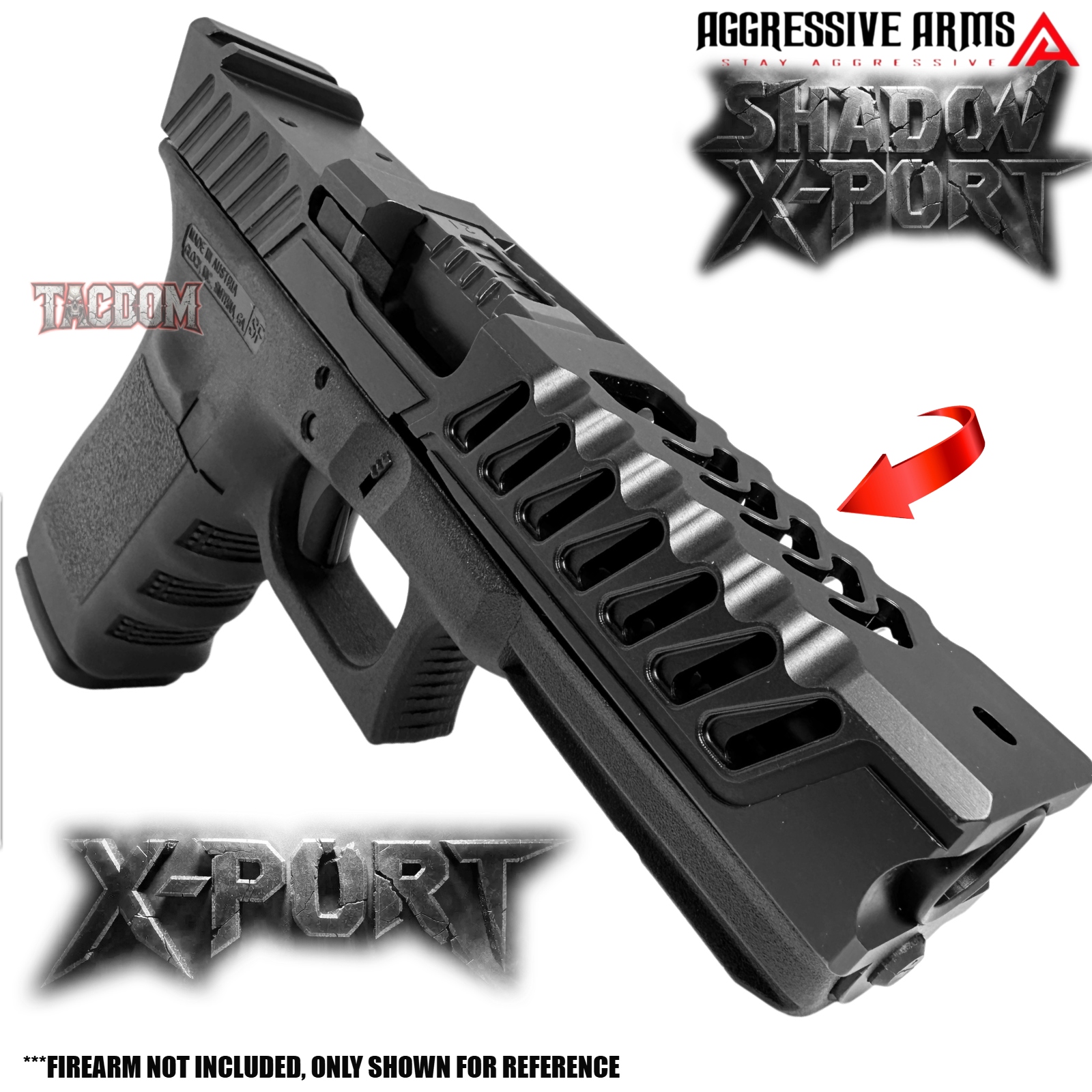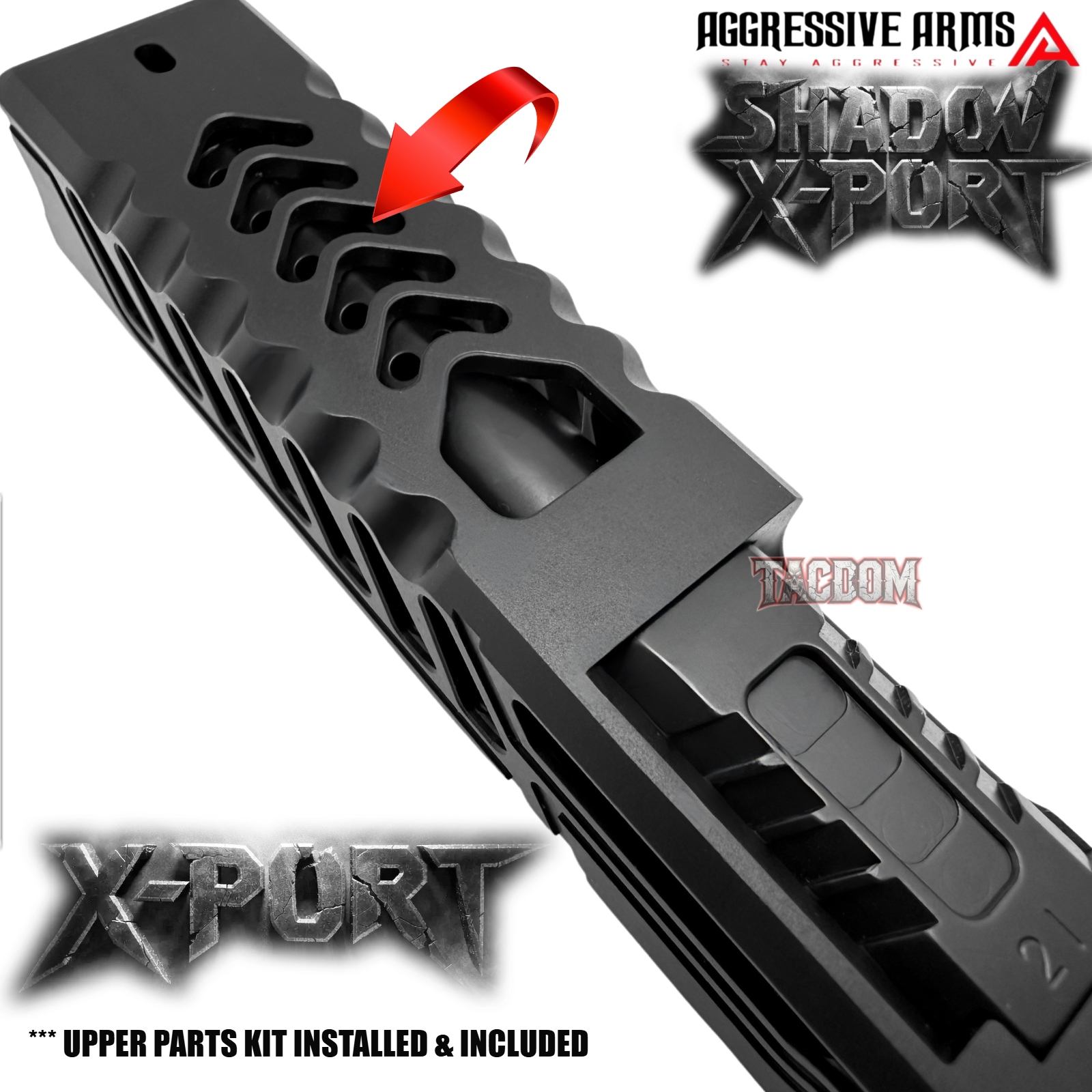 AGGRESSIVE ARMS BLACK SHADOW X-PORT PORTED SLIDE AND 10 PORT BARREL COMPLETE WITH PARTS INSTALLED FOR GLOCK 21 GEN 3 – .45ACP