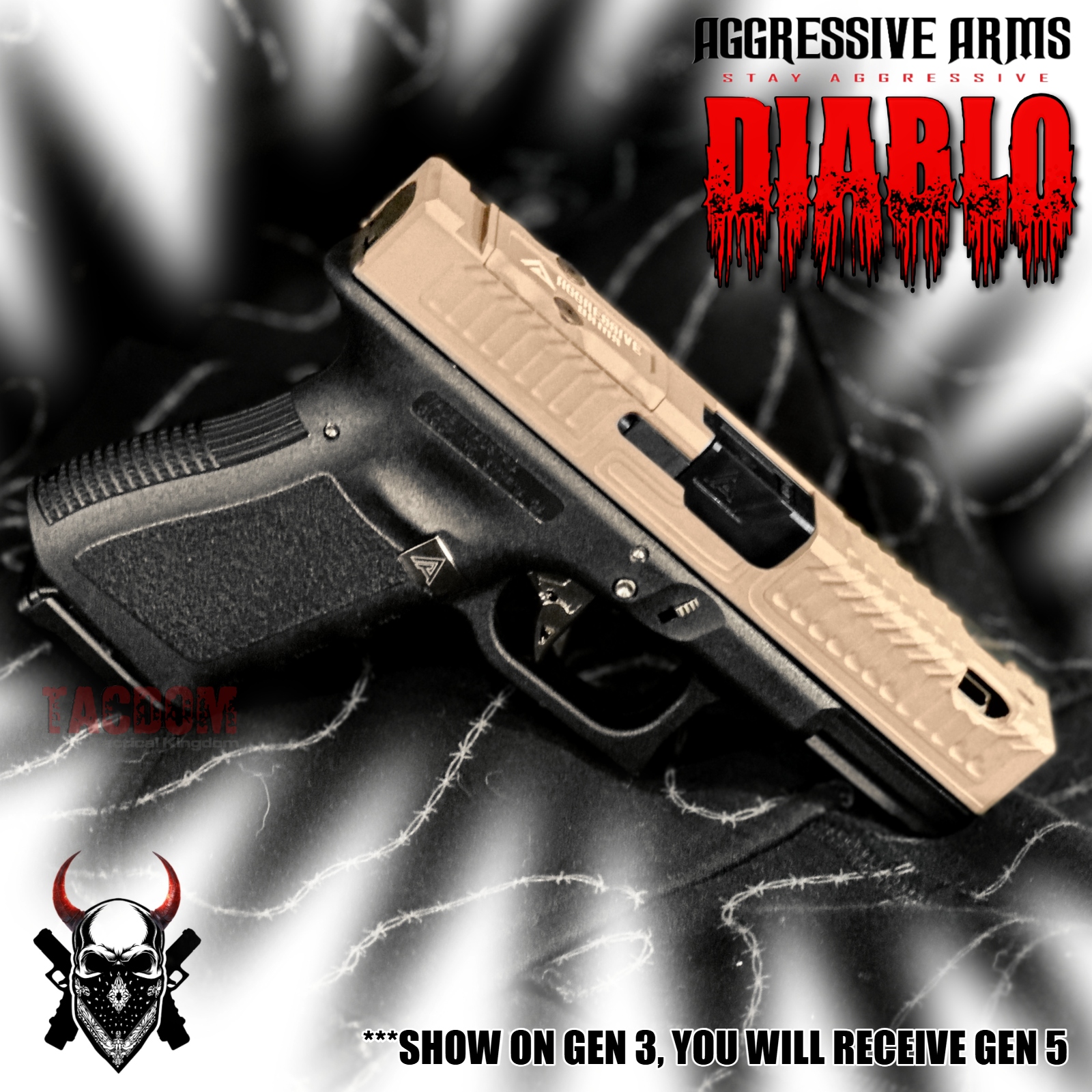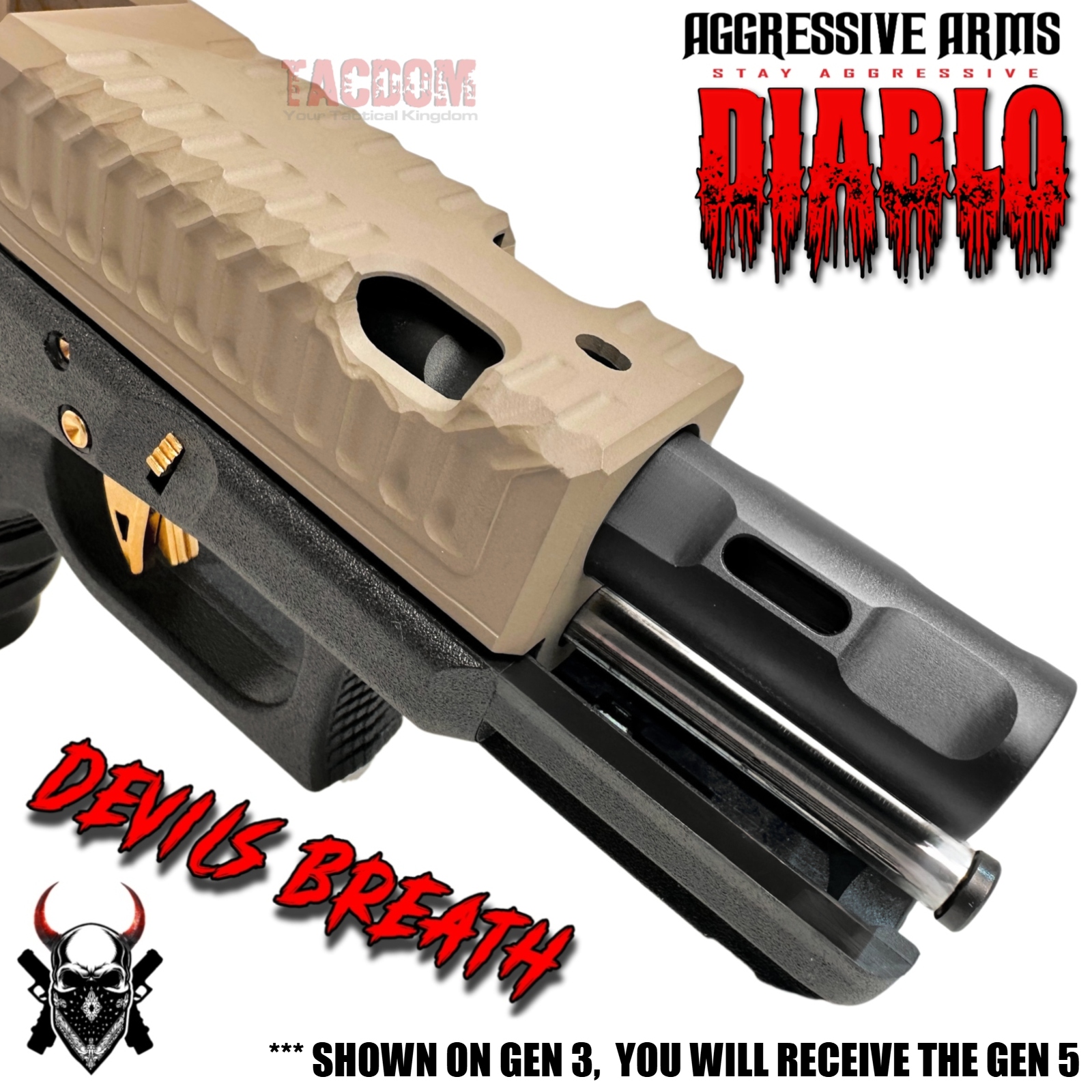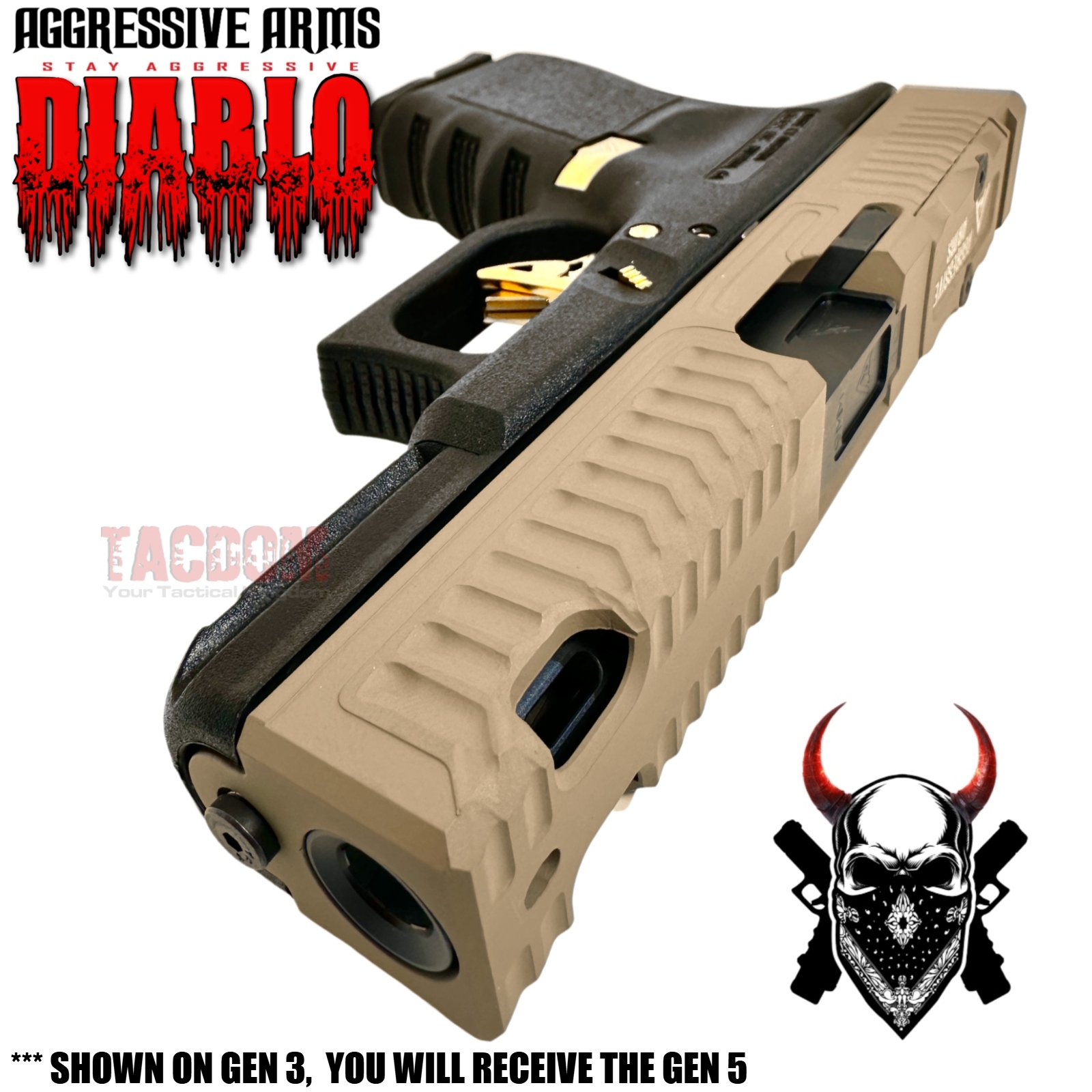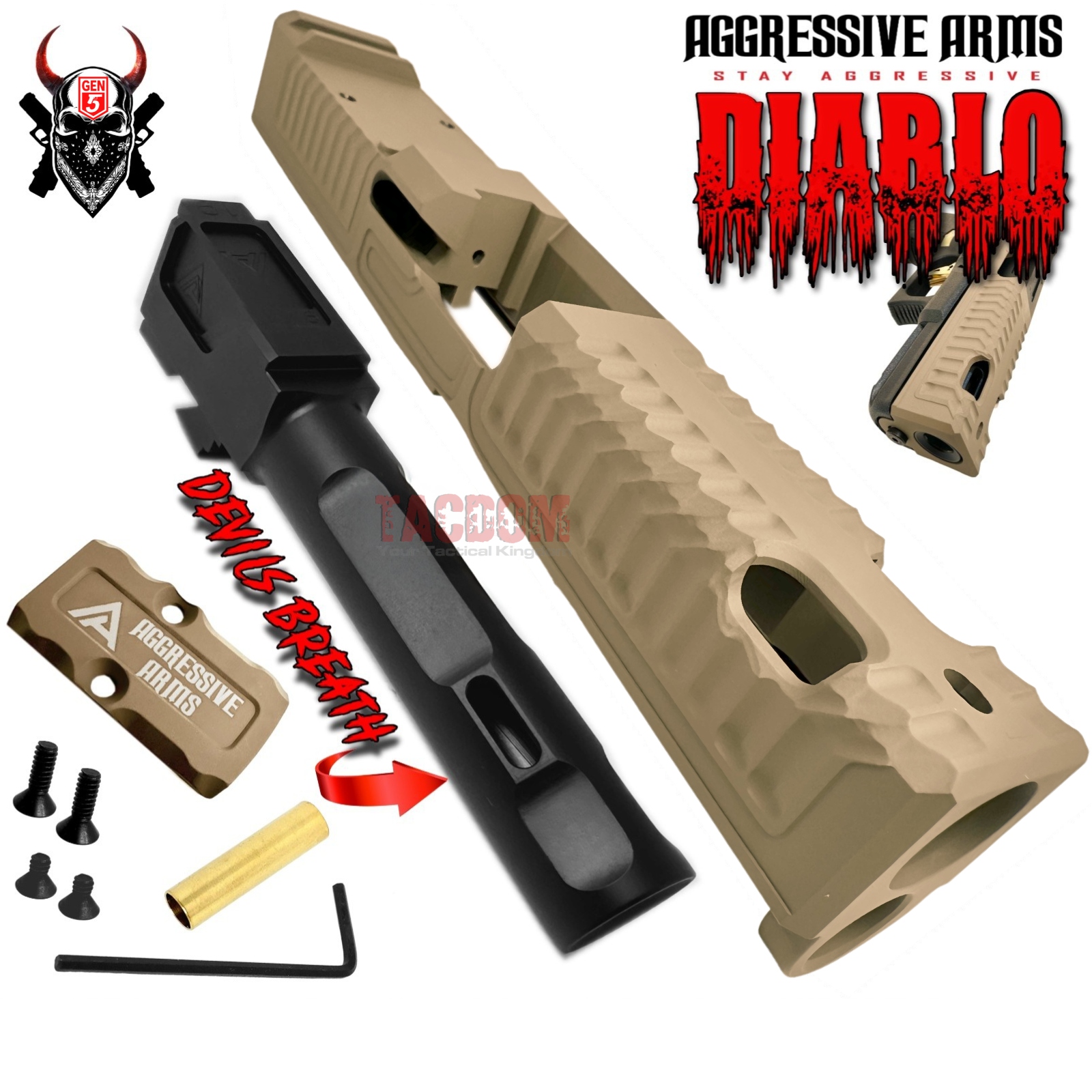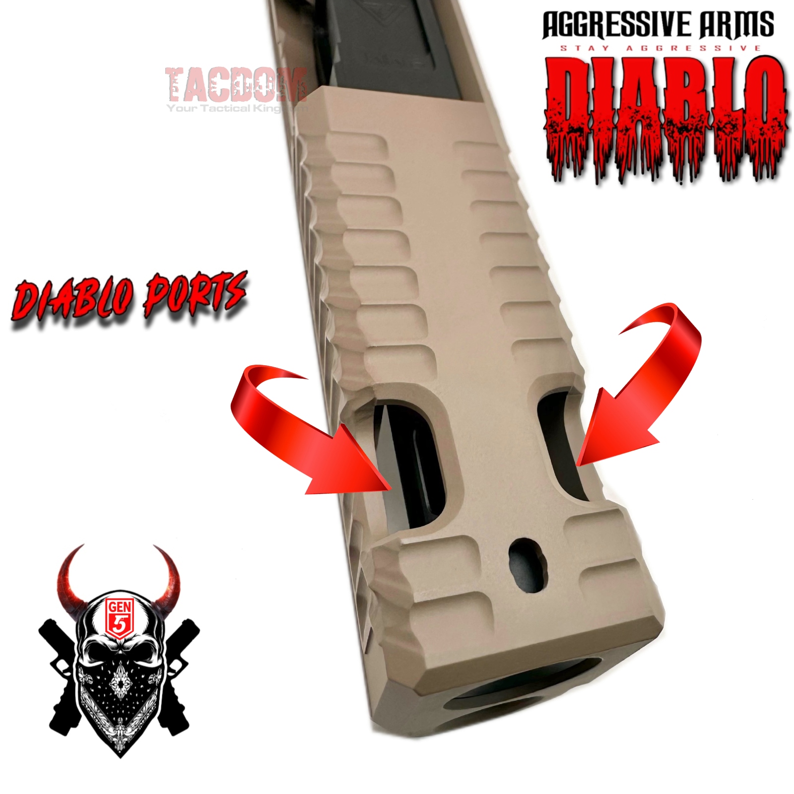 AGGRESSIVE ARMS DIABLO FDE TAN PORTED RMR Slide BARREL for GLOCK 19 GEN 5 COMPENSATED VAPOR PORTS