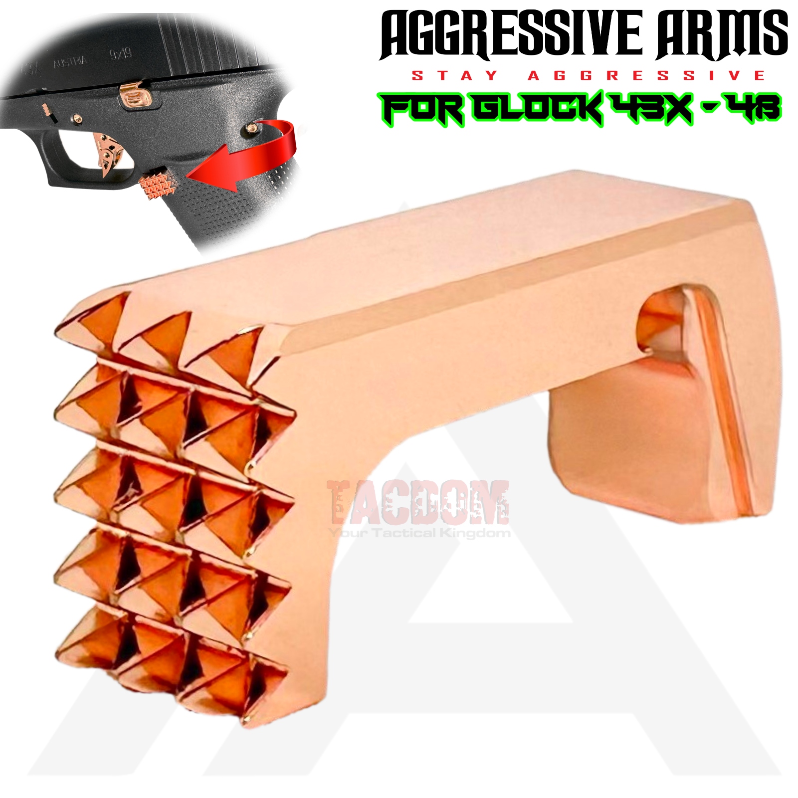 AGGRESSIVE ARMS JEWELRY COPPER DIMPLE PINS – EXTENDED SLIDE LOCK – EXTENDED MAGAZINE CATCH for GLOCK 43X & 48