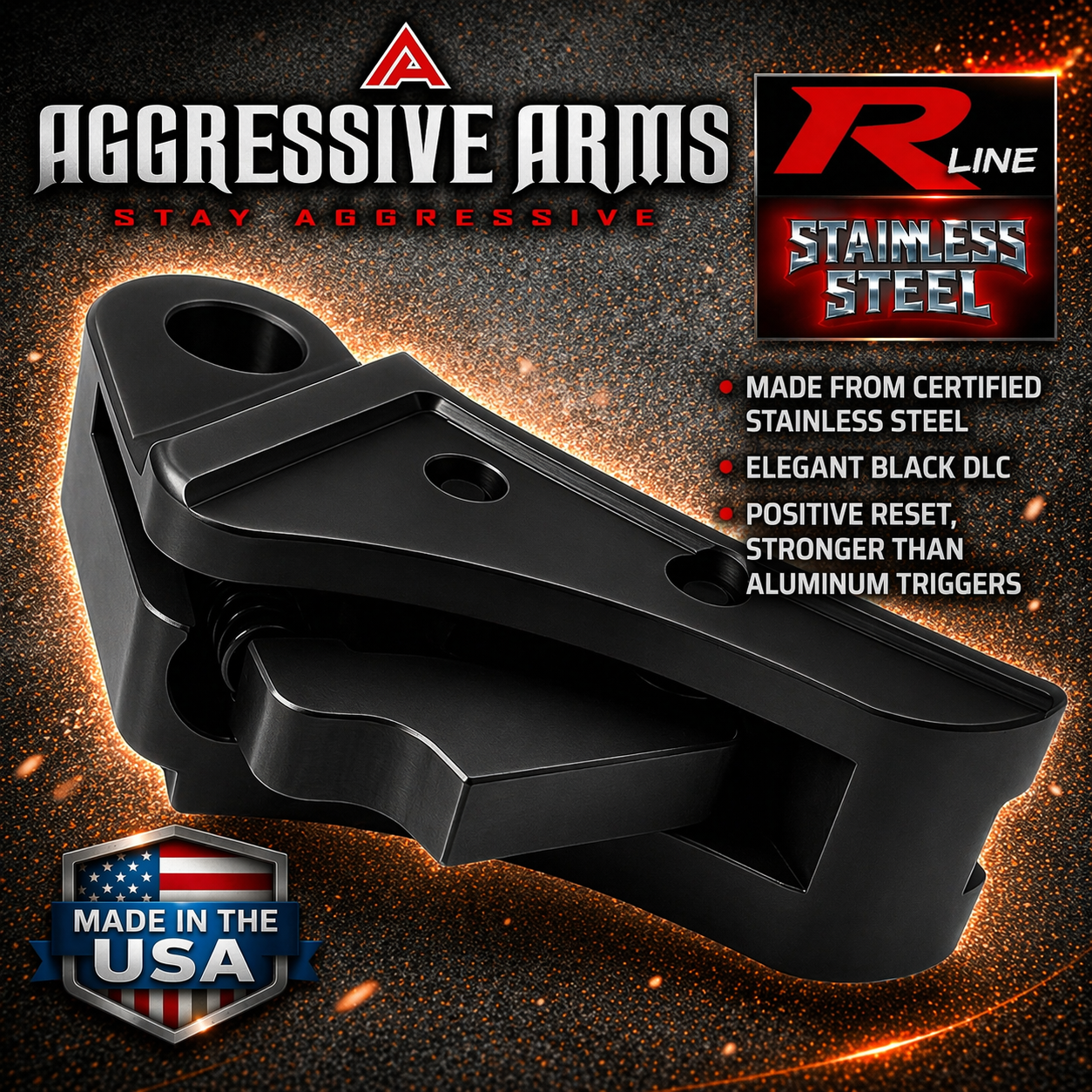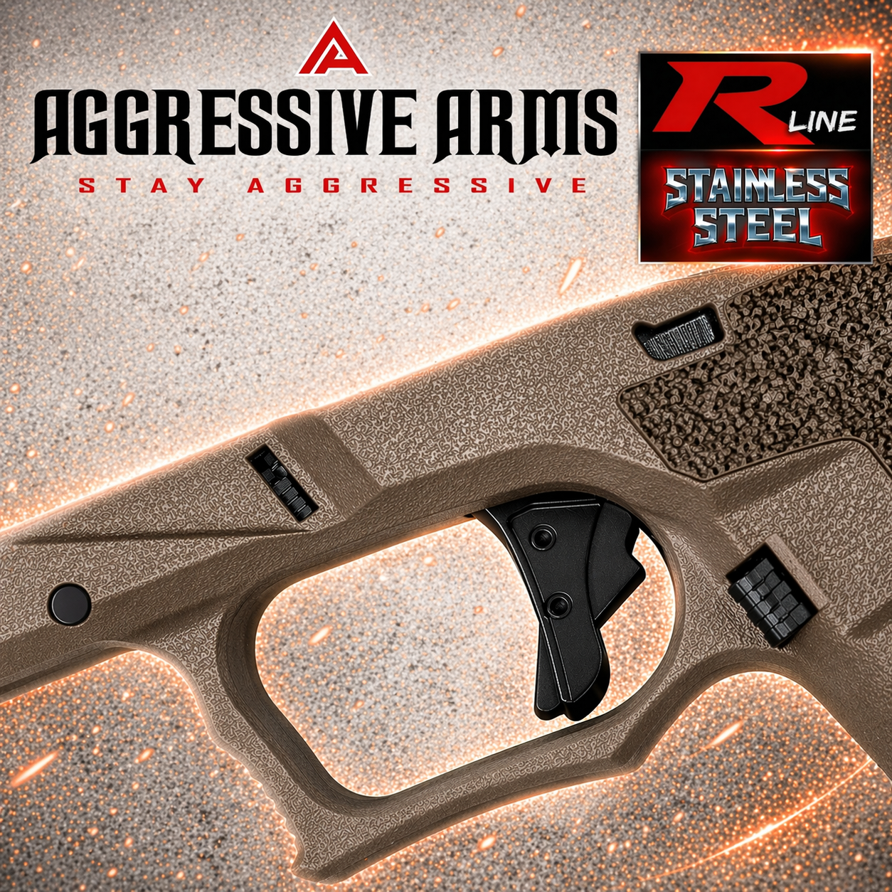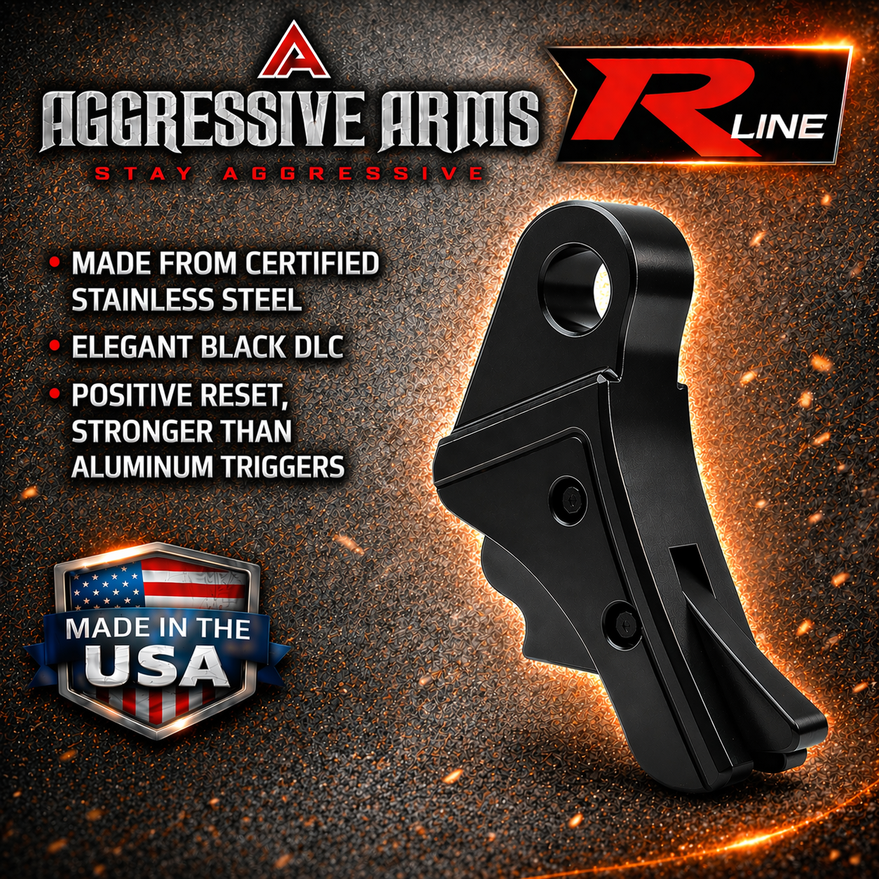 AGGRESSIVE ARMS R-LINE V2 for GLOCK 43 43X 48 “STAINLESS STEEL” TRIGGER BLACK DLC / BLACK SAFETY – With POLISHED TRIGGER BAR