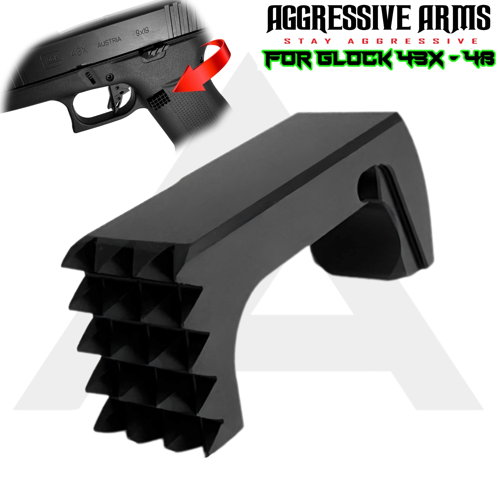 AGGRESSIVE ARMS STEALTH BLACK DIMPLE PINS – EXTENDED SLIDE LOCK – EXTENDED MAGAZINE CATCH for GLOCK 43X & 48