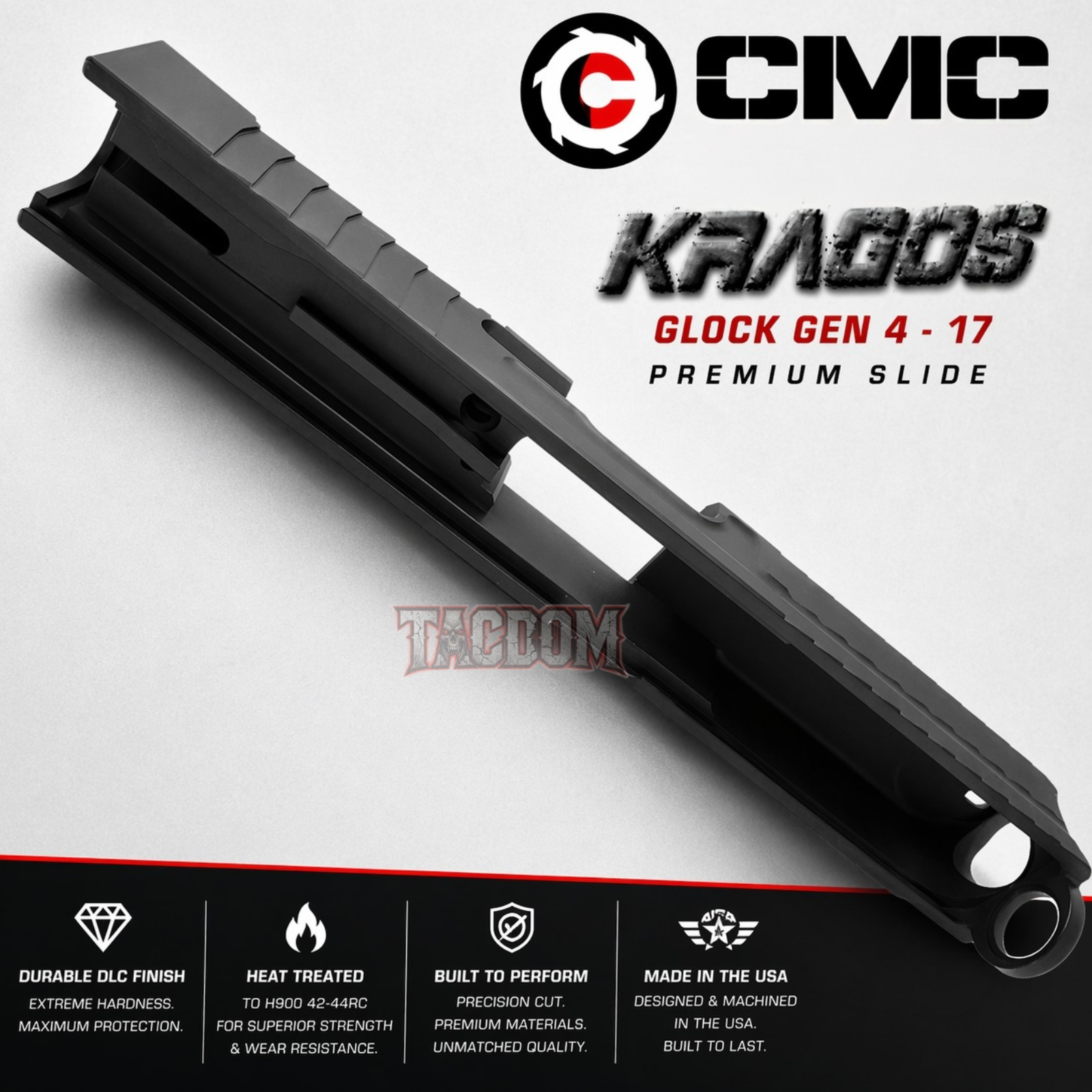 CMC KRAGOS SLIDE FOR GLOCK 17 GEN 4 – 17-4 BILLET STAINLESS – RMR CUT WITH MACHINED IN LUGS