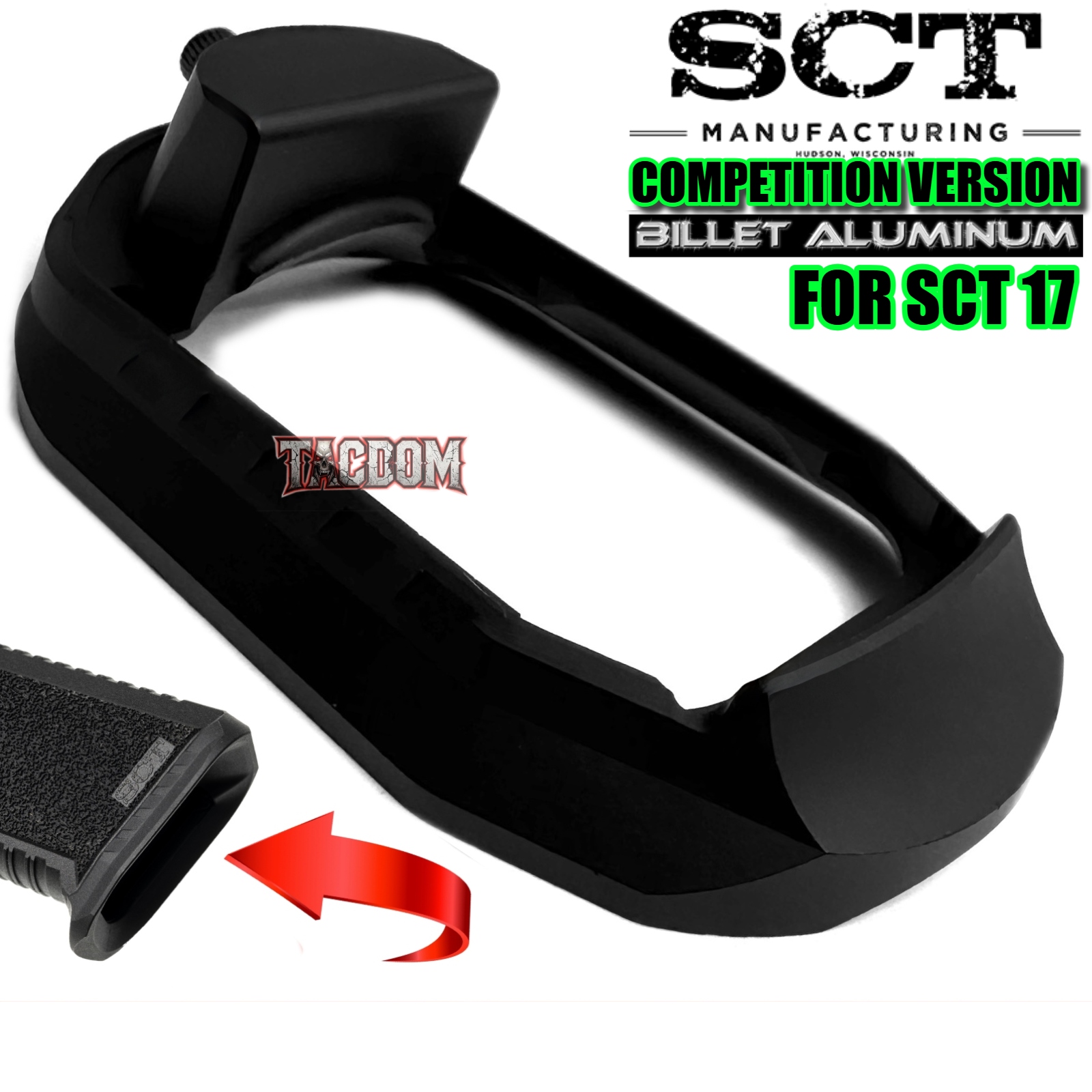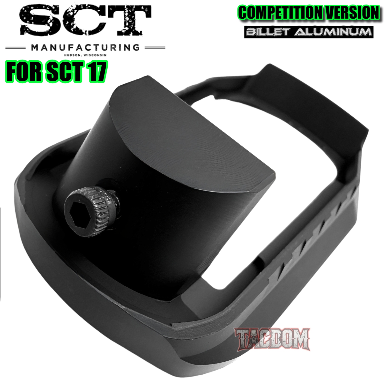 Introducing our latest innovation: a precision-engineered magwell crafted from billet aluminum, designed for seamless compatibility with the SCT17  frame. This magwell features a secure single set screw installation and is finished with a sleek black Cerakote coating. LARGER FUNNEL for better reloads especially in competitive use. Experience enhanced functionality and aesthetics with our expertly designed magwell.