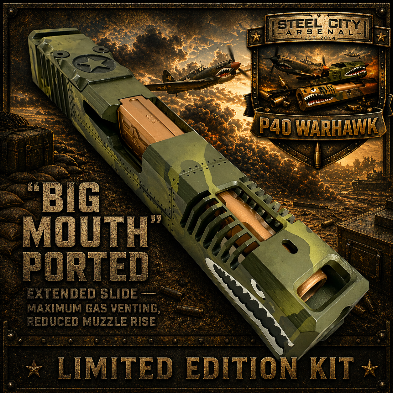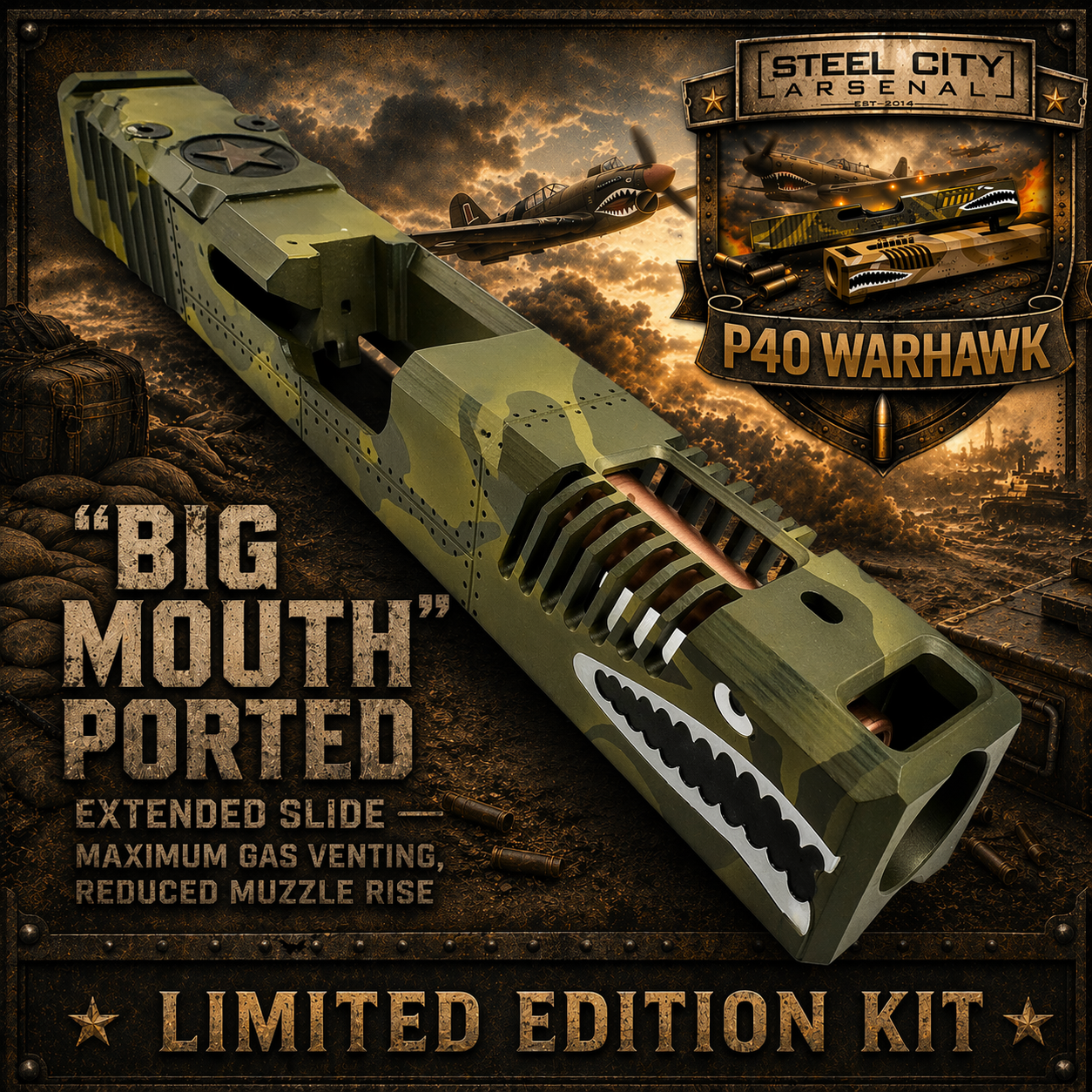 P40 WARHAWK SHADOW GREEN CAMO SLIDE (TACDOM EXCLUSIVE)