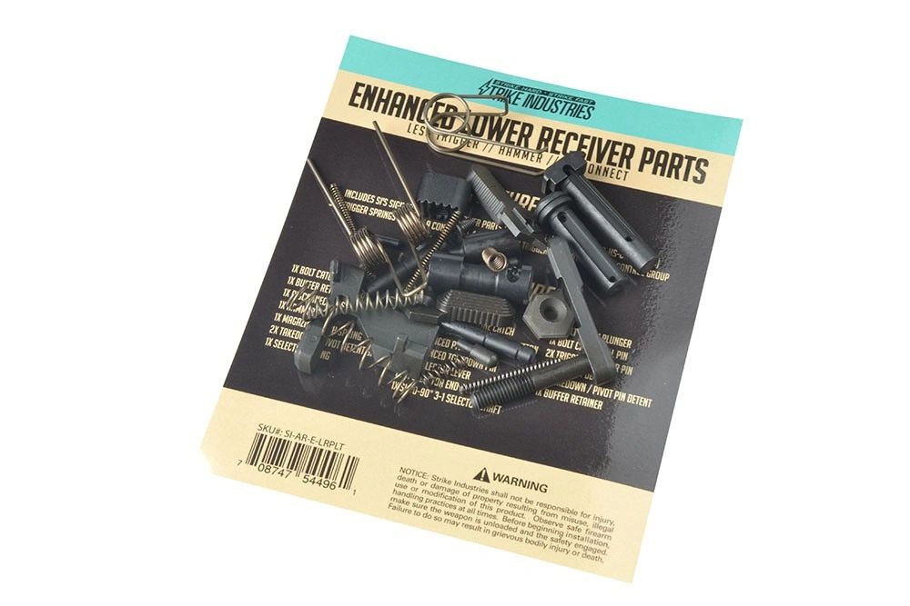 The Enhanced Lower parts kit offers a convenient upgrade package for the AR15 for those looking for a complete Strike Industries solution for new builds, or to update their plain jane AR. This kit includes all the basics that you will need to build out your AR (minus grip), but with Strike Industries Enhanced lower parts where applicable.