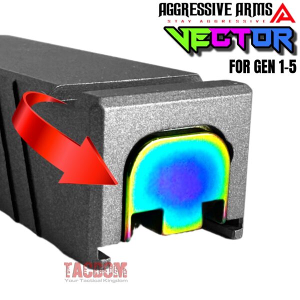 AGGRESIVE ARMS “VECTOR” RAINBOW PVD SLIDE END PLATE For GLOCK GEN 1 2 3 4 5 – STAINLESS STEEL