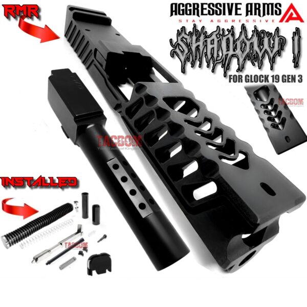 AGGRESSIVE ARMS DARK RAIDER RMR SLIDE & BLACK PORTED Barrel For GLOCK 19 GEN 3 – REDUCES RECOIL RISE WITH STYLE