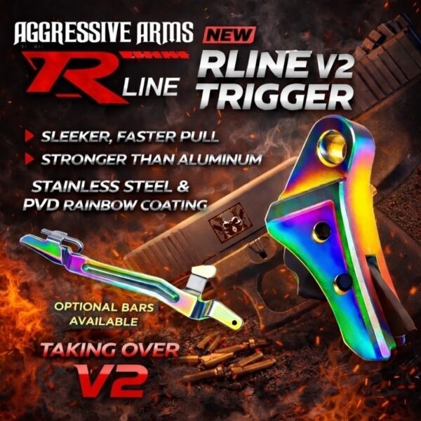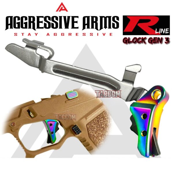 AGGRESSIVE ARMS R-LINE V2 for GLOCK GEN 1 2 3 4 5 “STAINLESS STEEL” TRIGGER RAINBOW PVD