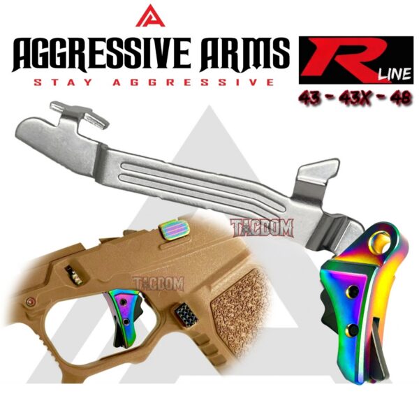 AGGRESSIVE ARMS R-LINE v2 for GLOCK 43 43X 48 “STAINLESS STEEL” TRIGGER RAINBOW PVD – With POLISHED TRIGGER BAR